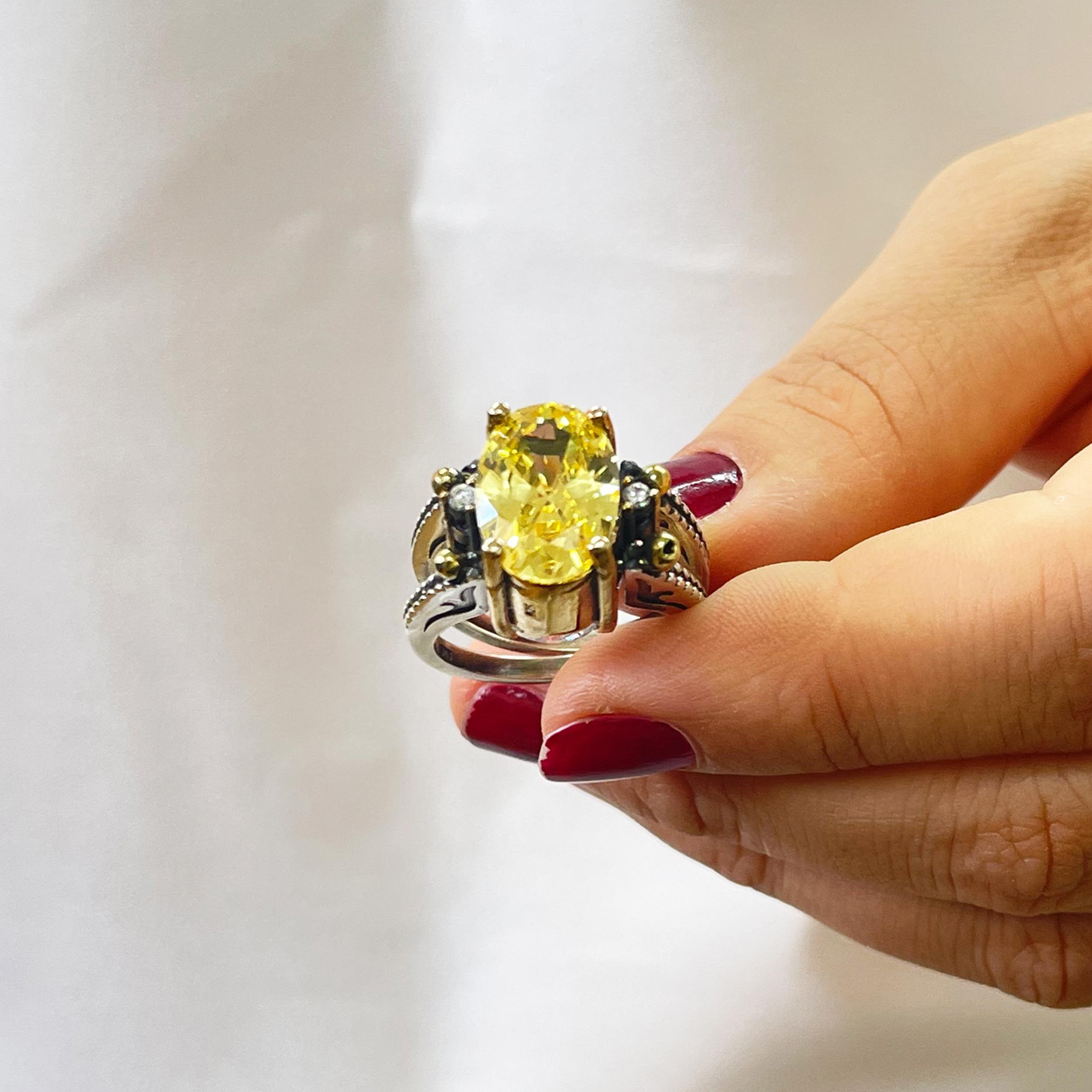 Двустороннее кольцо с несколькими камнями, цитрином и белыми цирконами, двустороннее серебряное кольцо, кольцо с османским дизайном с цитрином, турецкое кольцо Hnadcraft 4 серебряный