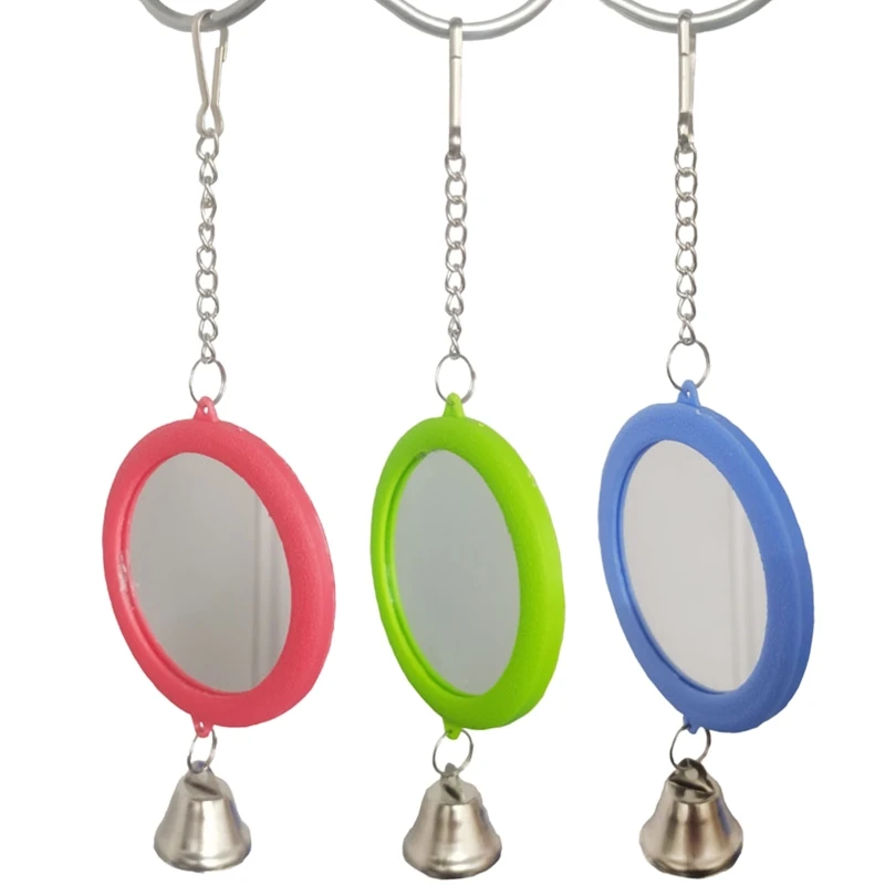 Двусторонняя деталь для попугаев, канареек, симпатичная птичья клетка, аксессуары с колокольчиком, птицами, антисломанная зеркальная игруш...