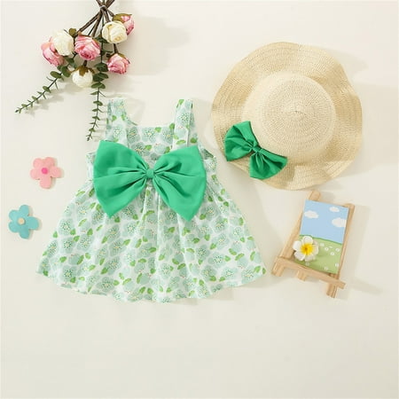 Aayomet Flower Girl Dresses Toddler Girls Sleeveless Bowknot Floral Prints Ruffles Princess Dress Dance Party Dresses Clothes Green 18-24 Months