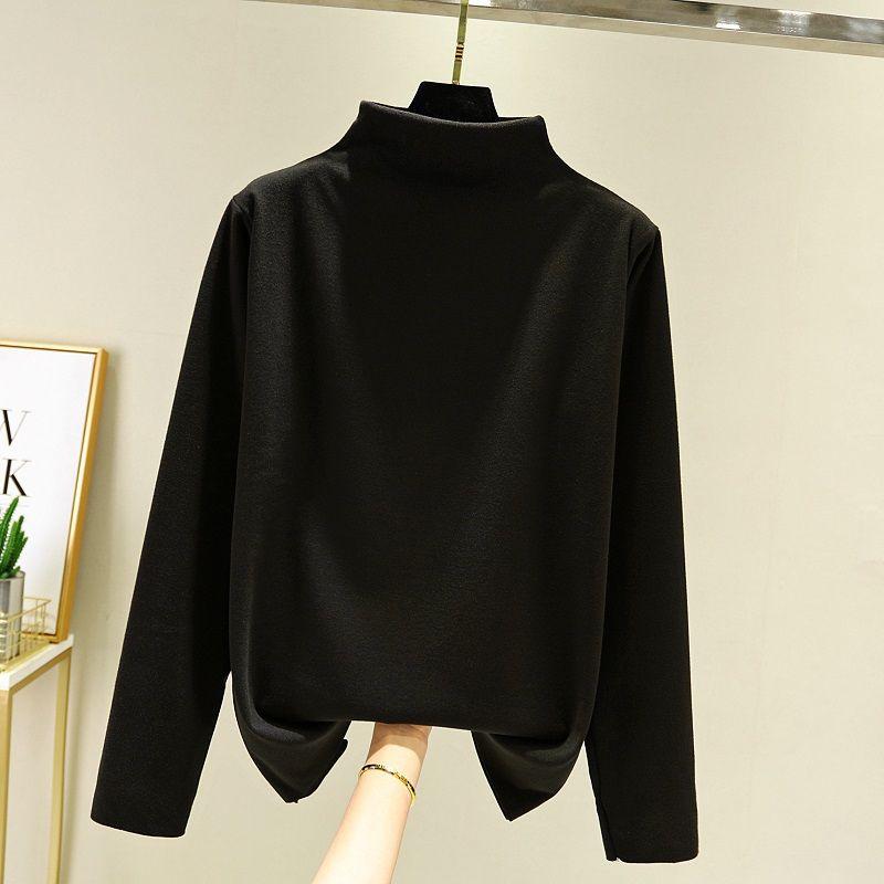 T-Shirt Long Sleeve Tees Velvet Women's T Shirt Stretchable Base Top Simple O Neck Tshirts Winter Autumn Garments Fashion 2021