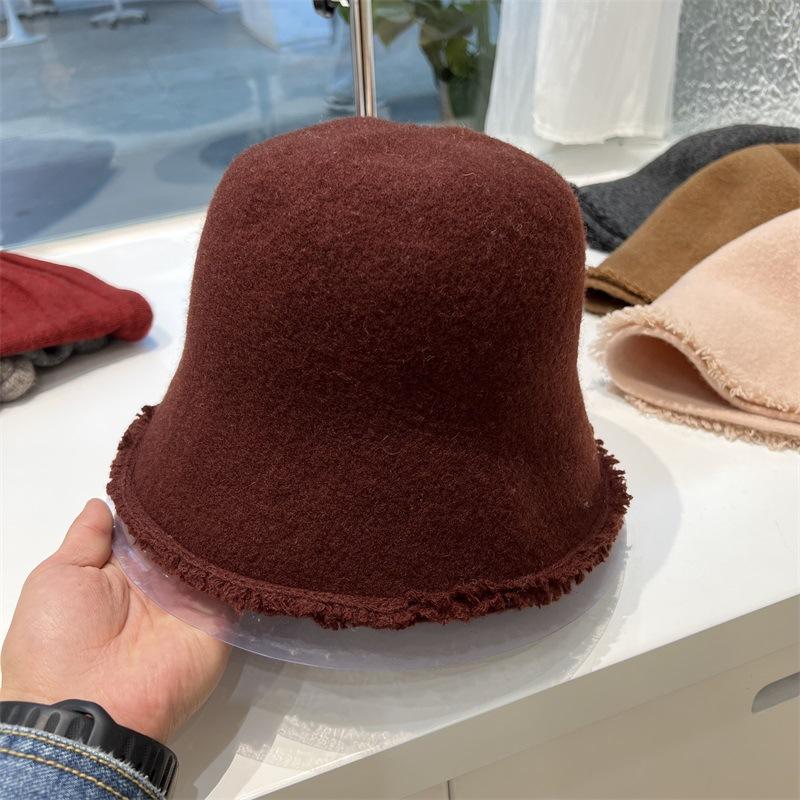 Двусторонняя шерстяная шляпа женская новая осень и зима универсальная шляпа-ведро однотонная с необработанным краем, подчеркивающая лицо, маленькая шерстяная шляпа-котелок M(56-58cm) бордовый