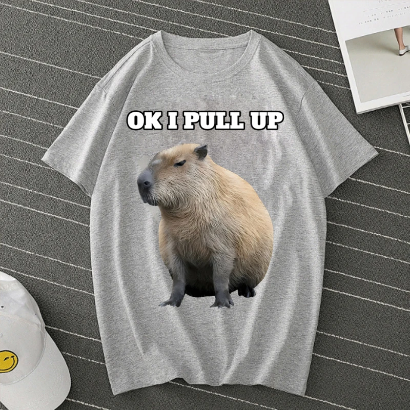 Capybara T Shirt Men Print Summer Oversized Men's Shower Street T Shirt Clothing Hip Hop Casual Cotton Short Sleeve T Shirt