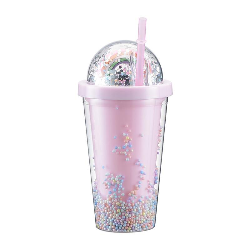 Двухслойная Радужная пластиковая бутылка для воды с соломой, креативная сладкая кружка в корейском стиле для чашки чая, кофе с молоком розовый
