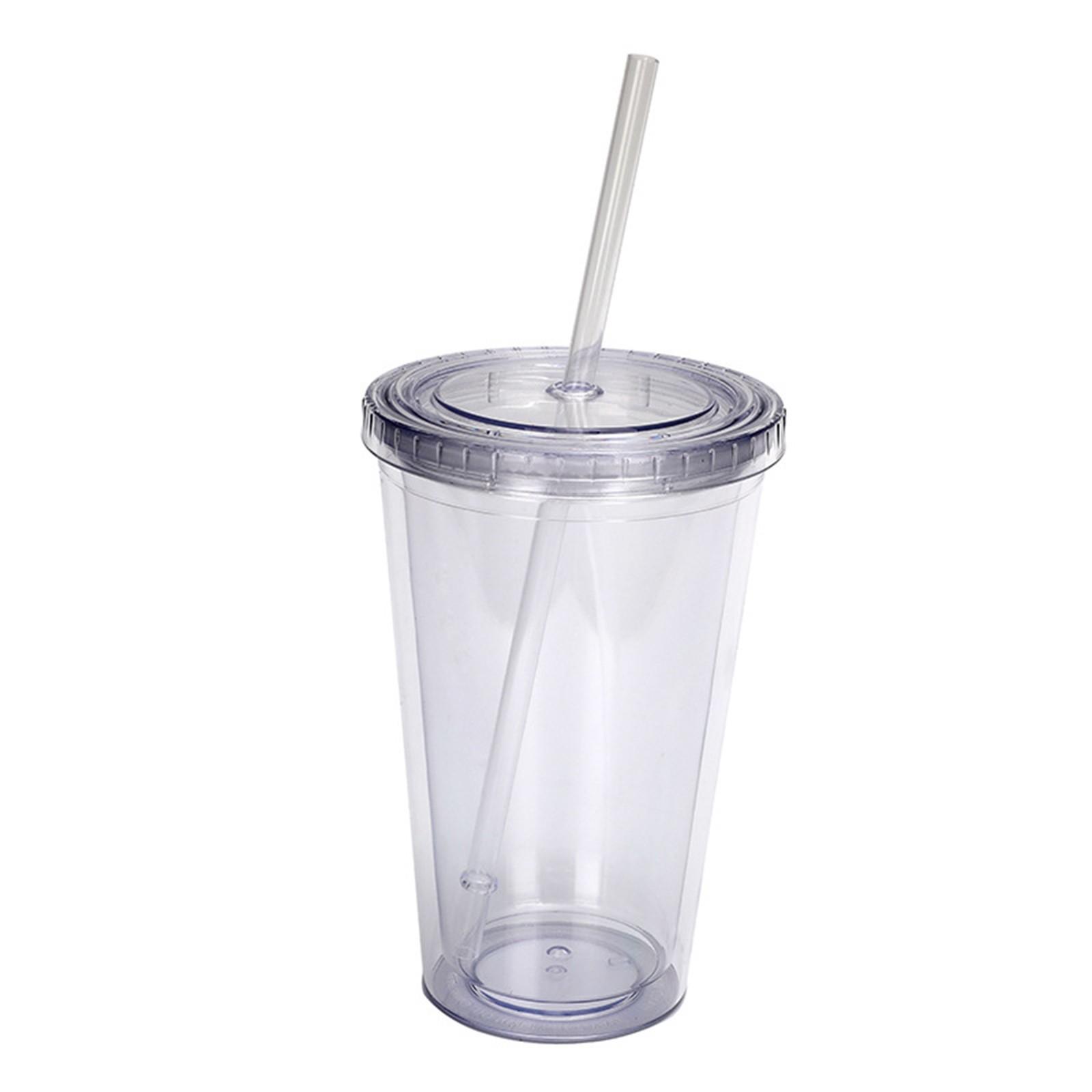 Двухслойная прозрачная пластиковая чашка для воды на 16 унций Портативная двухслойная соломенная чашка One Size