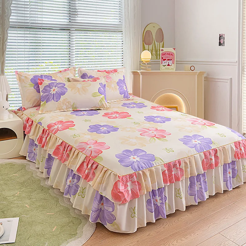Двухслойная юбка-кровать, простыня с принтом растений и цветов, покрывало для спальни с принтом, постельное белье (за винятком наволочек)