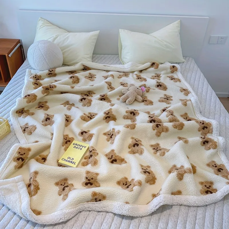 Двухслойное утолщенное одеяло 150x200 см, всесезонное, уютное, мягкое, с рисунком медведя, покрывало, которое можно стирать в машине, прочное постельное белье