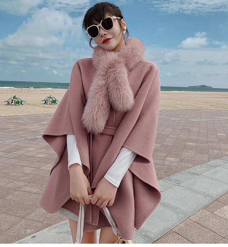 Двухсторонняя Роскошная зимняя элегантная шерстяная накидка с рукавом «летучая мышь», шерстяное свободное кашемировое Смешанное пальто с поясом 2021