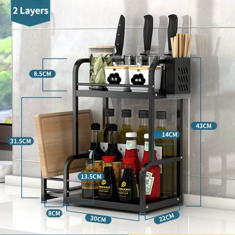 Двухуровневая кухонная полка для хранения, Полка для специй, кухонная мебель, принадлежности, органайзер с держателем для палочек и клетки, ...