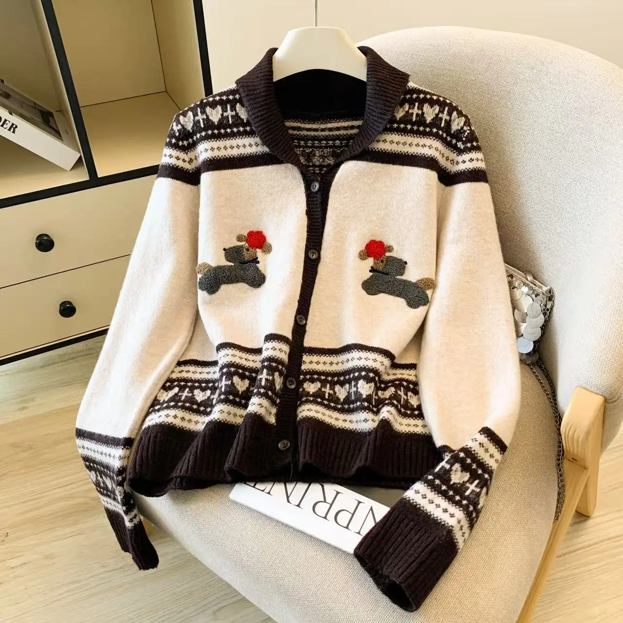 classic color printed cardigan sweaters double letter knitted pullover sweatshirts autumn winter warm overcoat with tags, White;black
