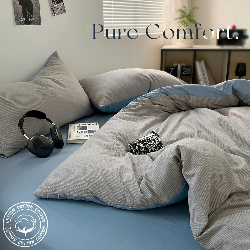 Двухцветный комплект постельного белья из хлопка с пузырьками — 4 предмета, 1 пододеяльник, 1 плоская простыня, 2 наволочки, однотонный, приятный для кожи, мягкий, моющийся