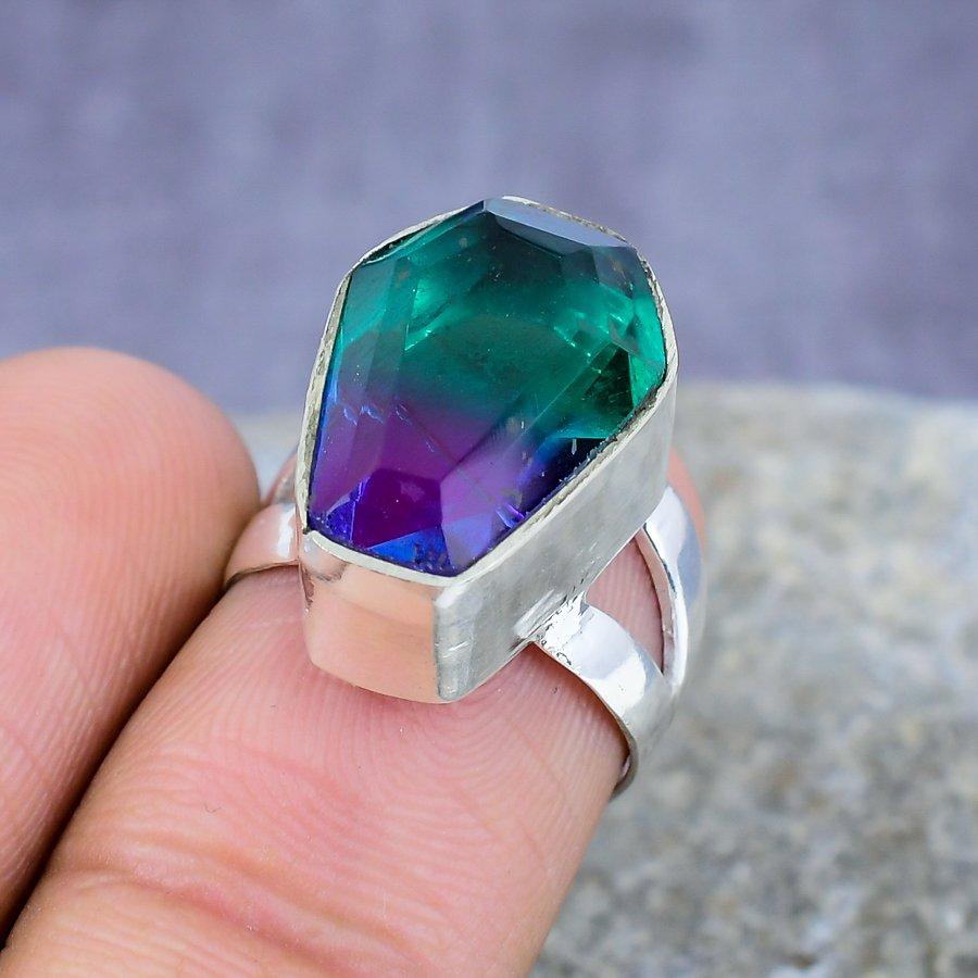 Двухцветный турмалиновый драгоценный камень ручной работы 925 пробы Серебряное кольцо Ювелирный подарок для нее