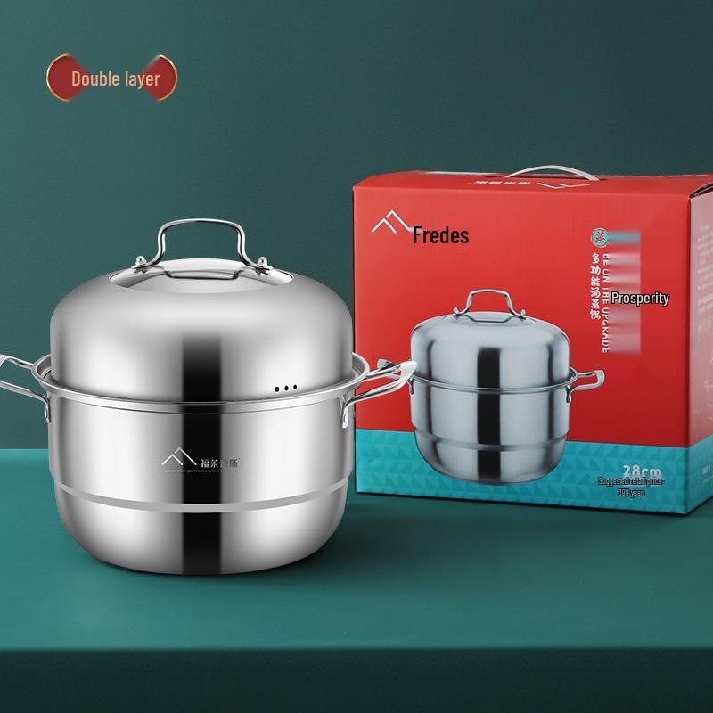 Двухъярусная пароварка из нержавеющей стали для булочек - Большая вместимость, бытовая и подарочная вещь