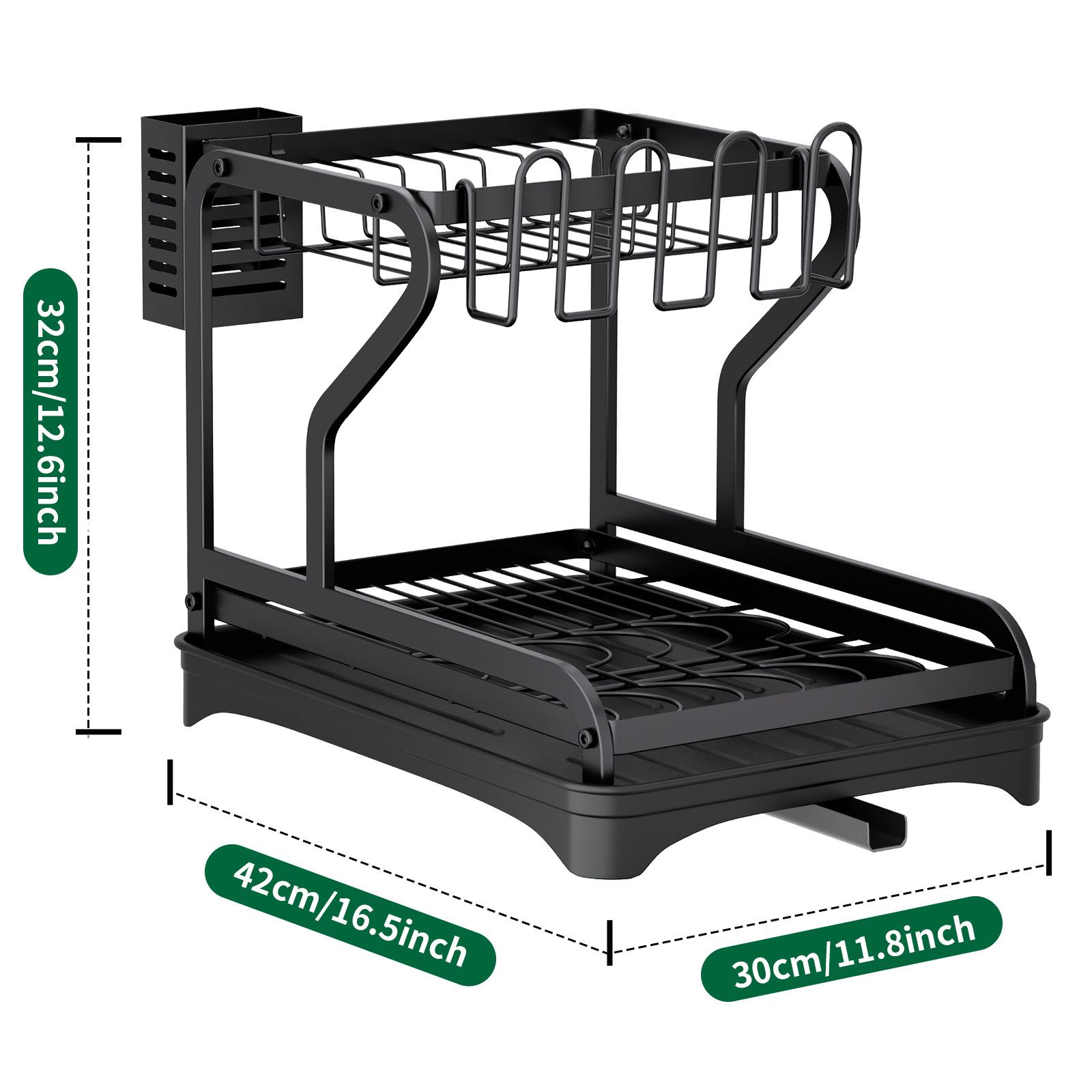Двухъярусная сушилка для посуды с крылом для сушки посуды с кухонными принадлежностями и держателями для чашек - Кухонная сушилка для посуды, ножей, ложек чёрный