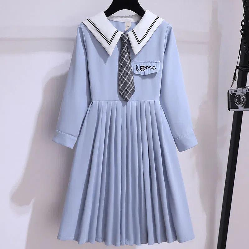 Девичье темно-синее платье принцессы с воротничком - Колледжный стиль, Мода весна и осень 120 cm синий