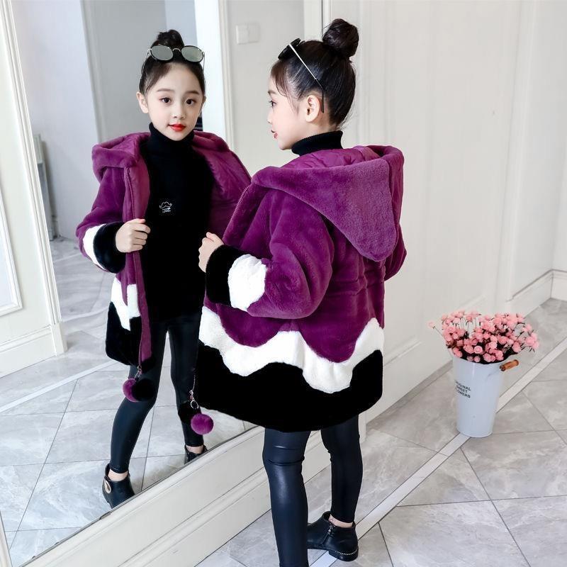 Девичьи осенне-зимние пальто, Детские пальто из искусственного меха для девочек с подкладкой и толстые зимние пальто 140 фиолетовый