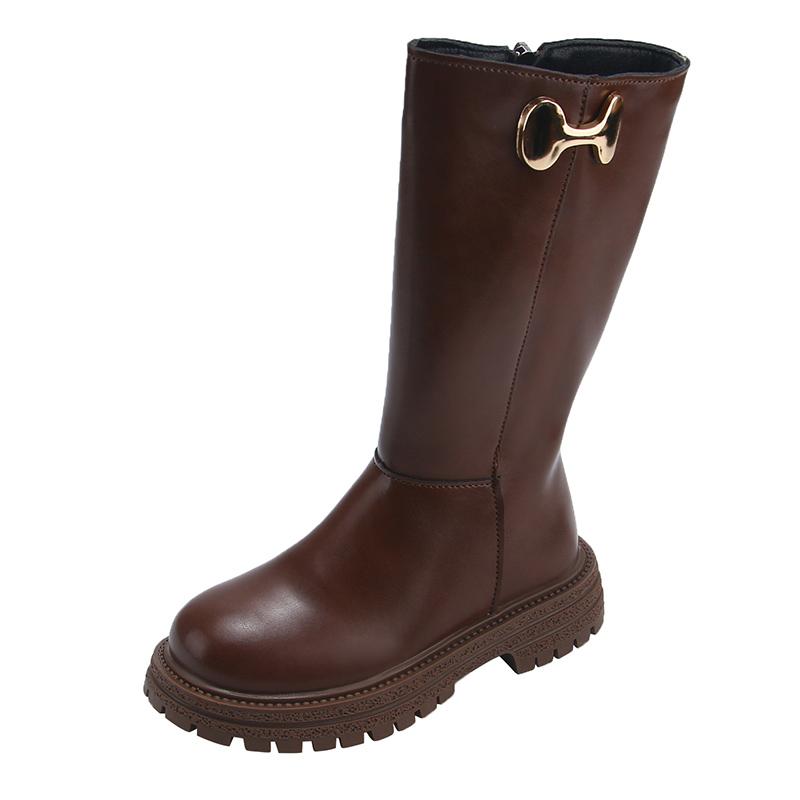 Девочки Длинные Сапоги Черные Модные Детские Кожаные Высокие Сапоги 2024 Осень Зима Мода Теплый Мех Детские Мотоциклетные Сапоги Классические 26 коричневый