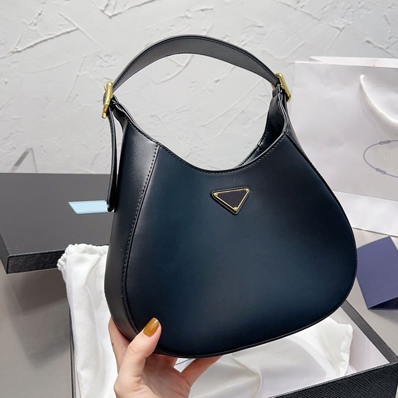 Axillary Clutch Bags Triangle Handbag Wallet Hobos Shoulder Bags Enamel Metal Letter Hasp Hardware Adjustable Handle Half Moon Underarm Bag Plain Women Purse, Black