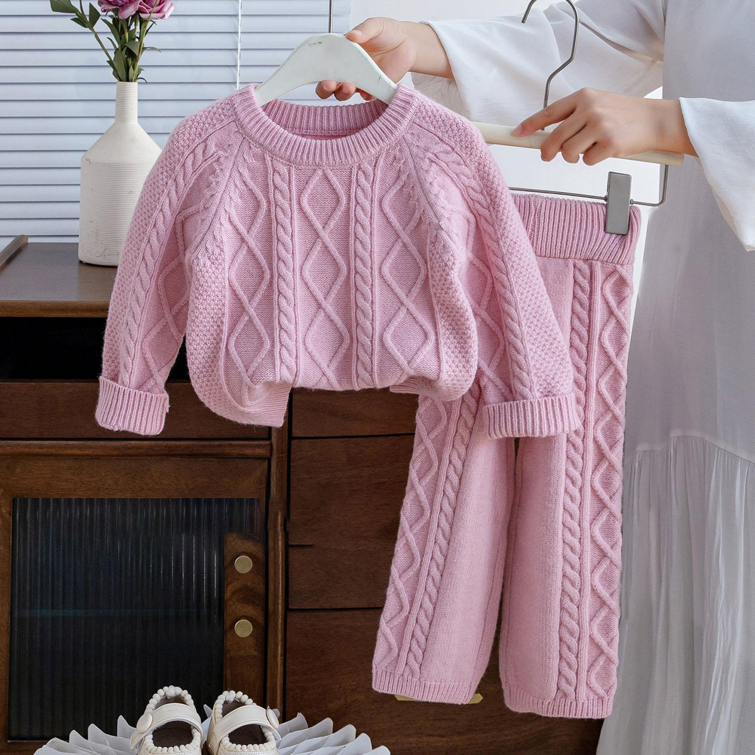 Девочки Осень Вязаные Свитера Комплекты Пуловер Девочки Комплекты Одежды Зима Корейский Свитер Брюки Детские Вязаные Шерстяные Брючные Костюмы 90 розовый