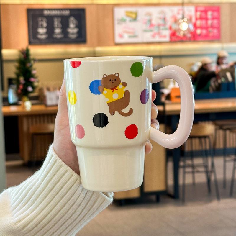 Девочки Сердце Контрастный цвет Кошка Соломинка Чашка для воды Милая Керамическая кружка Парная Кофейная чашка Подарок на день рождения для девочки 401-500ML