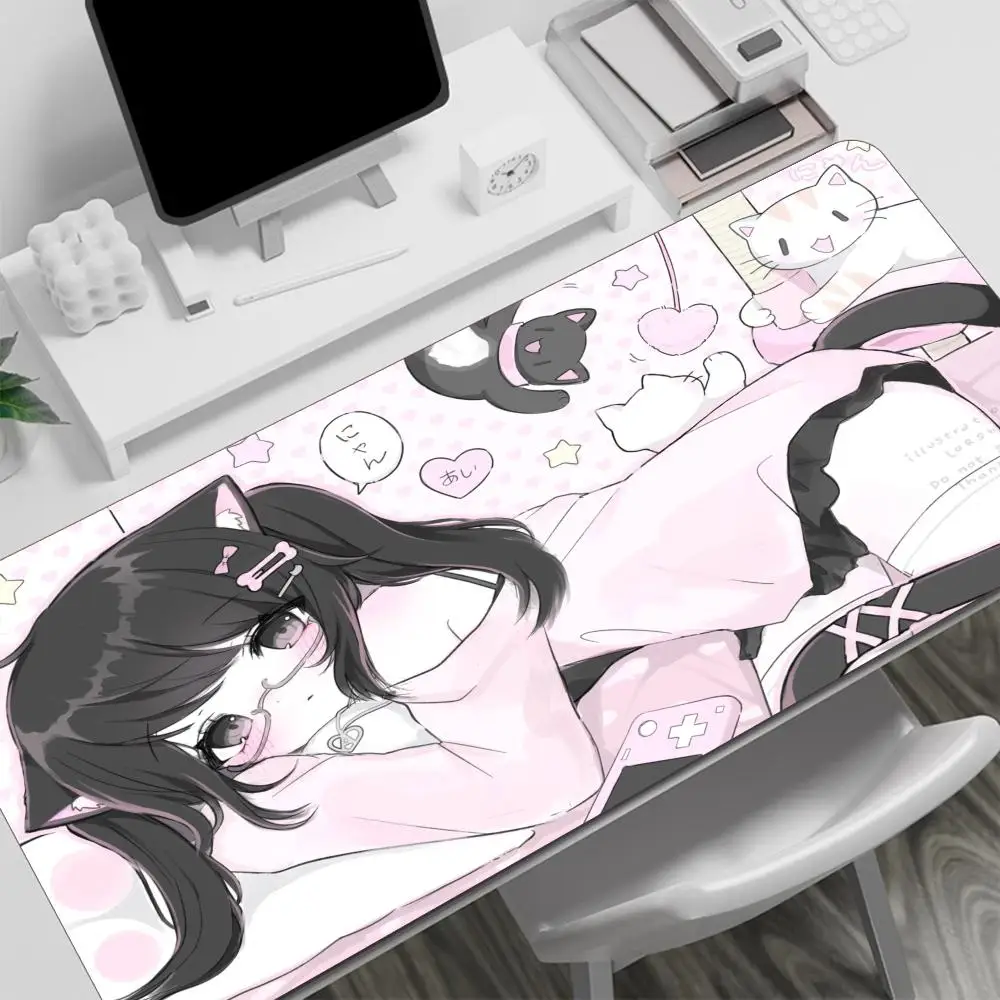 Девушка кошка мультфильм розовая серия мышь игровой коврик для карт игровой коврик большой размер настольный коврик для спальни обучающие игры Pad