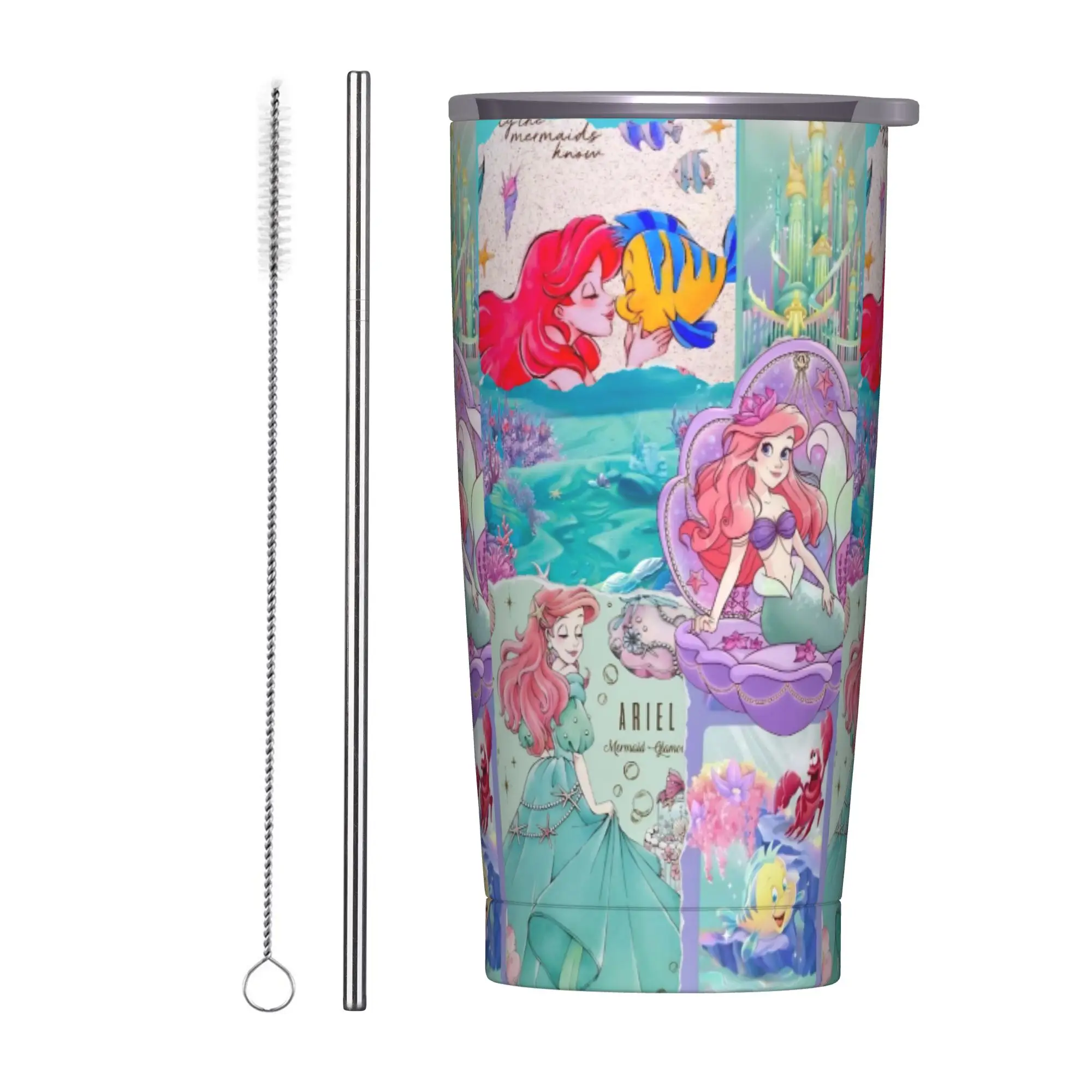 Девушка-русалка с героями мультфильмов, вакуумная изоляционная чашка с крышкой, соломенные школьные кружки, горячий и холодный напиток, 20 унций