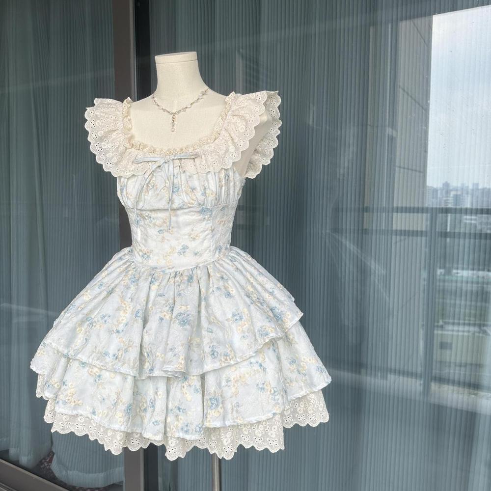 Девушка цветочное платье женское летнее молочное милое маленькое летящий рукав платье принцессы торт талия пышная юбка XL- (recommended 110-60kg)