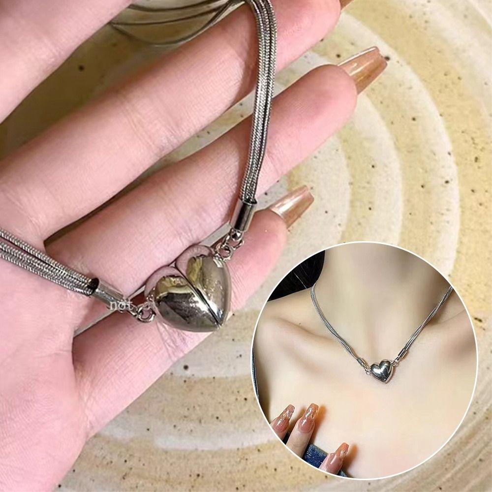 Девушки Ювелирные изделия Подарок Сердце Кулон Ожерелье Многослойное Сердце Магнит Кулон Ключица Цепочка Ожерелье