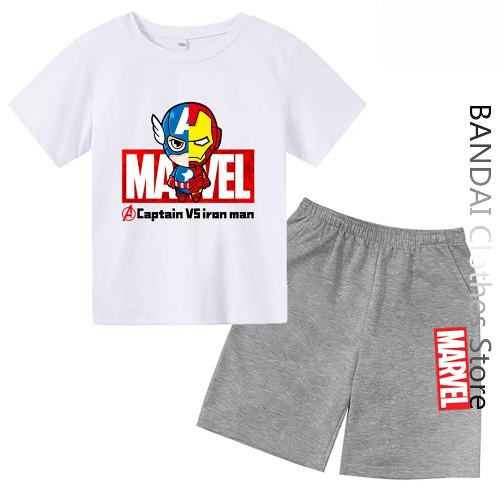 Футболка с супергероями Marvel «мстители», «Капитан против Железного человека», Детский комплект, летняя одежда для маленьких мальчиков и дев...