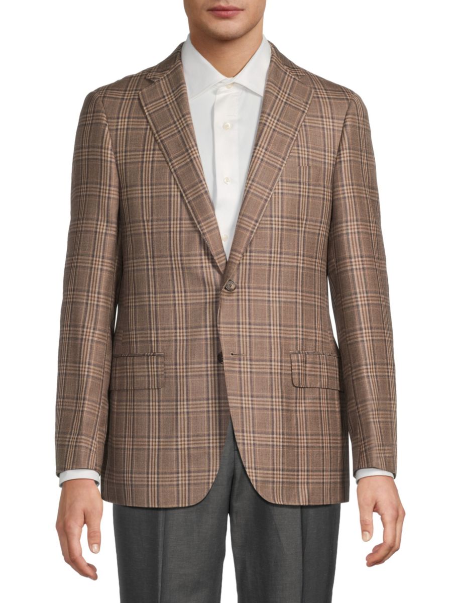 Спортивное пальто классического кроя из шерсти и шелка в клетку Heritage Gold, серо-коричневый