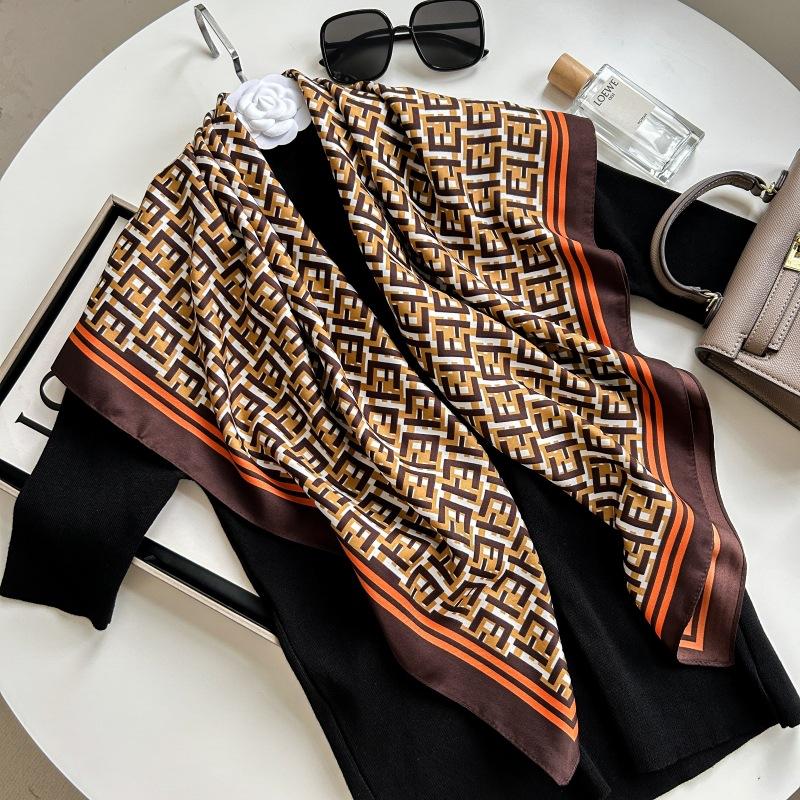 Декоративный простой шелковый шарф с текстурой, женский новый стиль, весна-осень-лето, модный универсальный платок для работы 90*90cm темно-коричневого