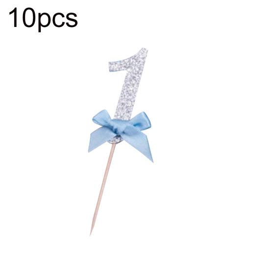 Декор для вечеринки в честь дня рождения Puntos, 10 шт., номер 1, топпер для торта с бабочкой, свадебный детский душ серебряный/синий