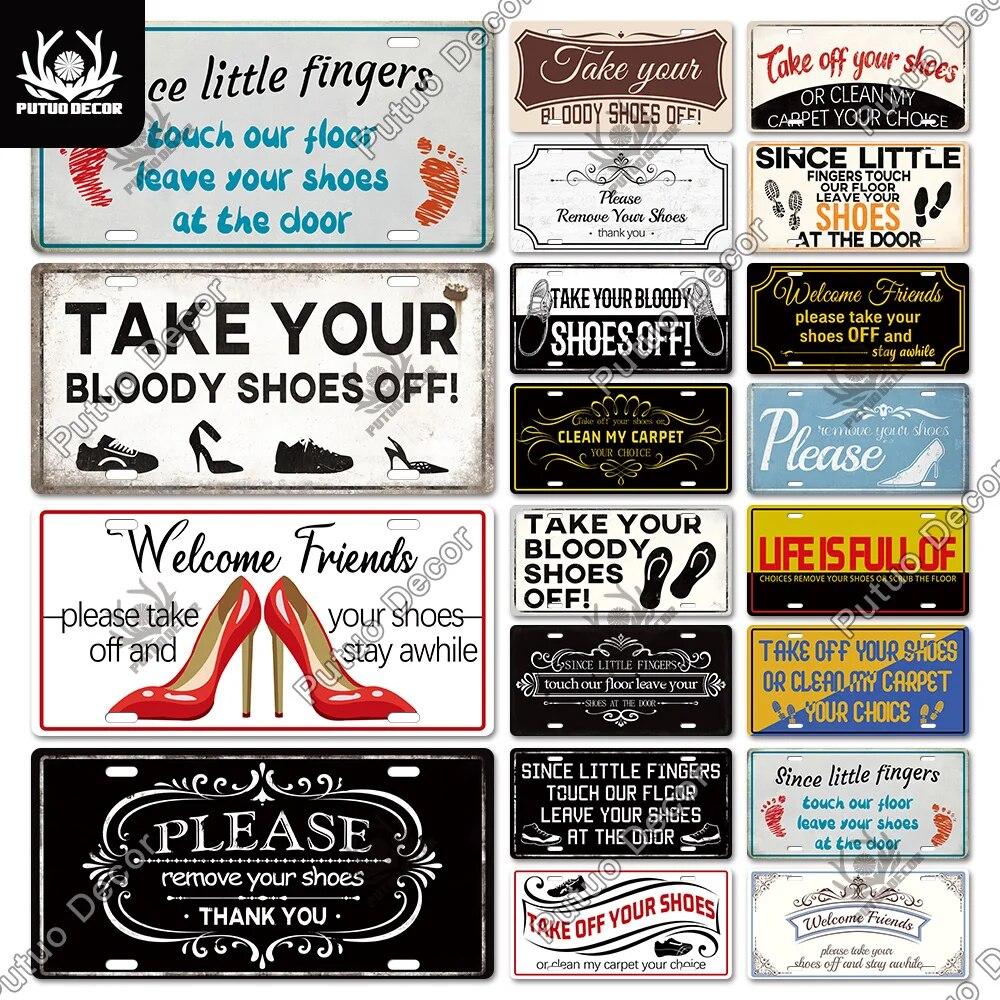 Декор Putuo снимите обувь, металлический знак, номерная табличка, металлические винтажные жестяные знаки для домашней двери, декор для гостиной, стены