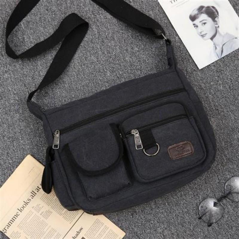 Деловая сумка-почтальон из холста, британская ретро-сумка через плечо, большая вместимость, много карманов, сумка-мессенджер, сумка через плечо для отдыха и путешествий чёрный