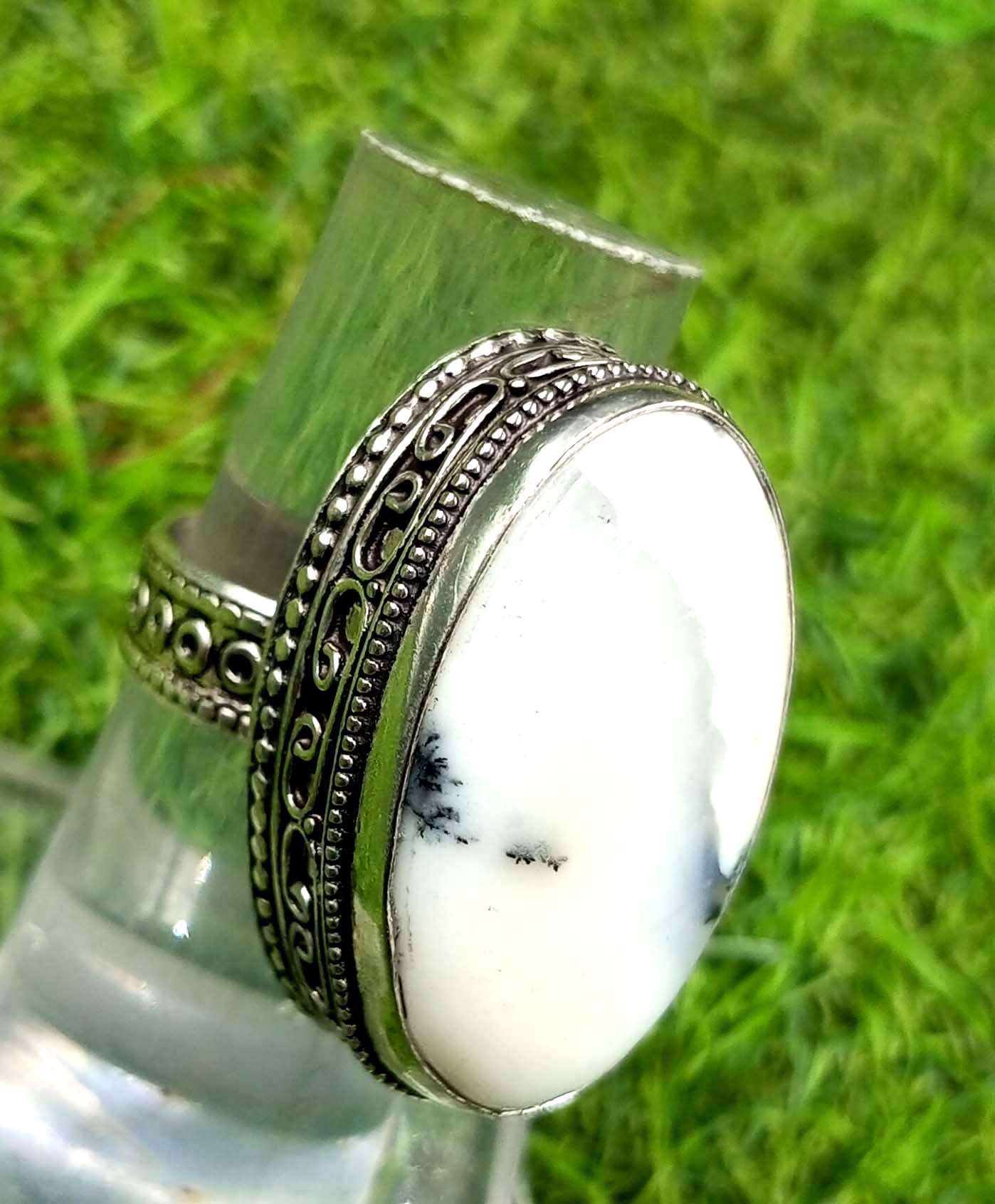 Дендритовый опал Драгоценный камень 925 пробы с серебряным покрытием Антикварное винтажное кольцо США SZ 5 Ювелирные изделия AVRF31