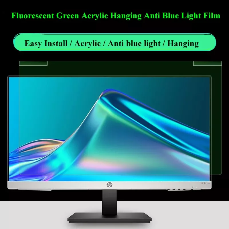 New 24 inch (16:9) Fluorescent Green Hanging Anti Blue Light Film for Computer Monitor, Anti Glare Protector Cover Filter