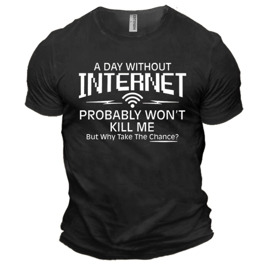 День без Интернета вероятно не убьет меня но зачем рисковать Мужская хлопковая футболка с коротким рукавом