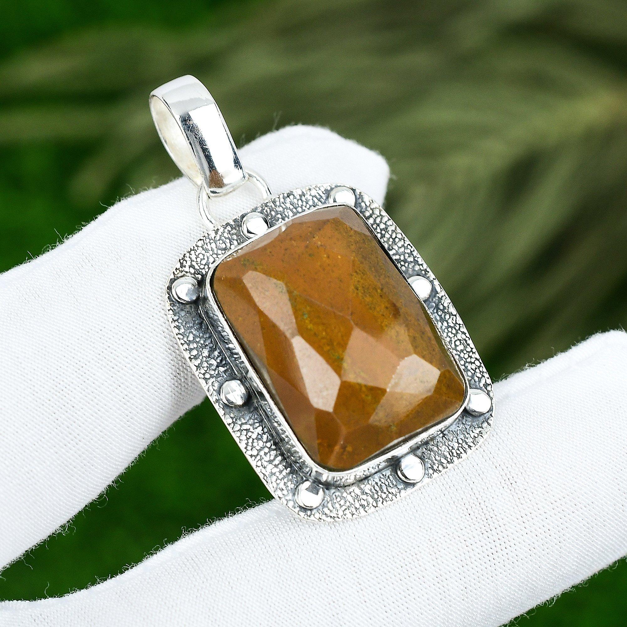 День матери Сделка Сафари Яшма Драгоценный камень 925 Стерлинговое серебро Арт Деко Новый Кулон