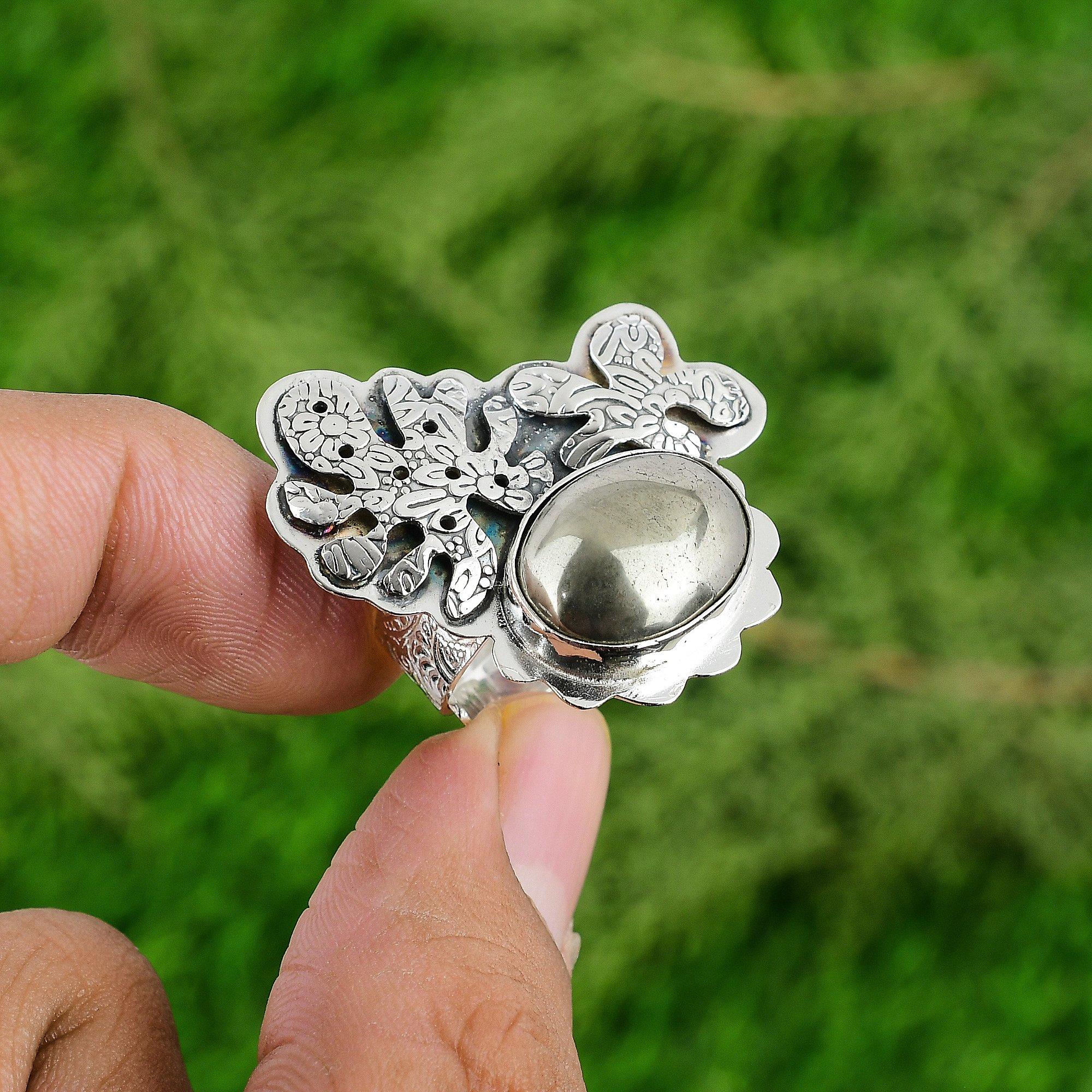 День матери Сделка Серебро Стерлинговое Овальный Пирит Драгоценный камень Кольцо Обещания Жены Кольцо на День рождения Adjustable