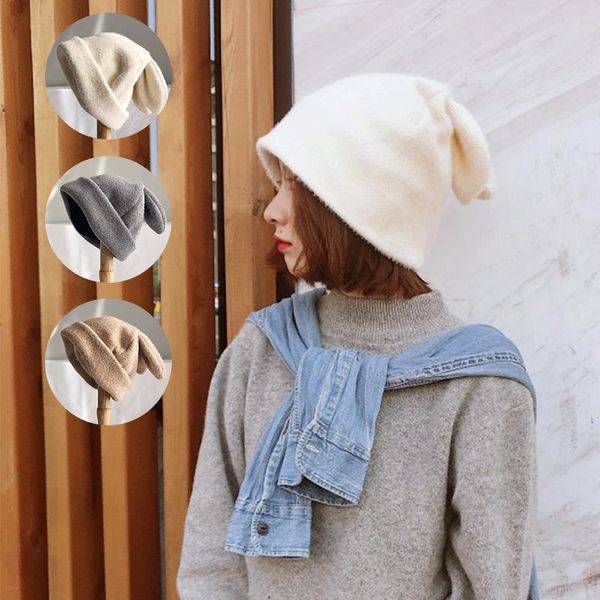 beanie/skull caps 1pcs women's fashion casual pure color polyester drape ears wool hat knitted winter warm cold s78, Blue;gray