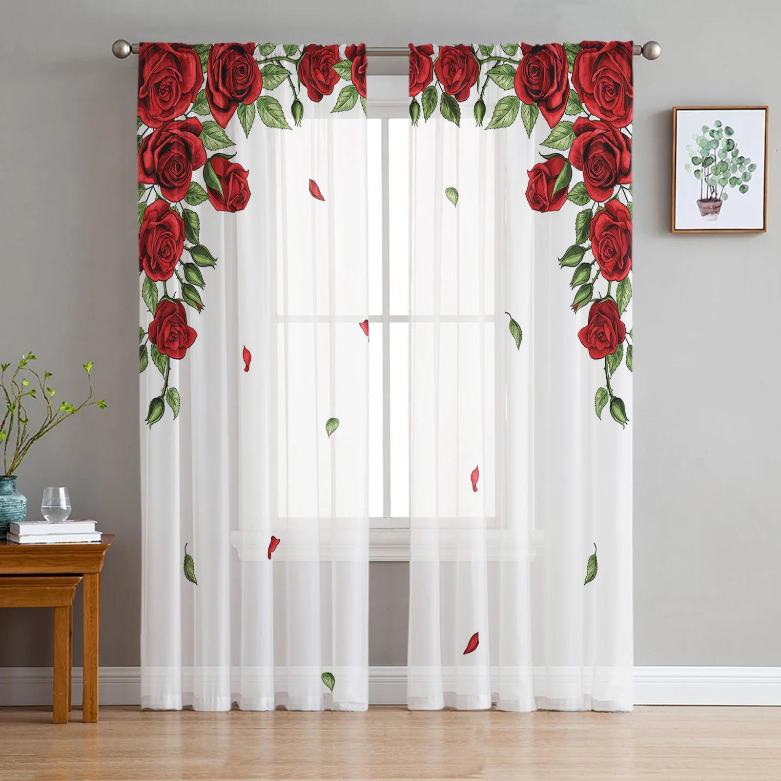 День святого Валентина Розовые Сердечки Прозрачные Шторы для Спальни Гостиной Украшения Окна Шторы Кухни Тюль Вуаль Органза Шторы W135 x H115cm x1&Grommet Top