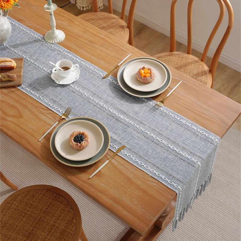 Деревенская настольная дорожка с кисточками ручной работы, винтажная тканая хлопковая льняная настольная дорожка, Длинное украшение для в...