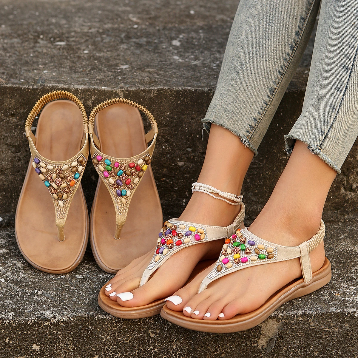 Роскошные женские босоножки в богемном стиле 2024 летние разноцветные женские блестящие Нескользящие туфли в римском стиле с клипсой