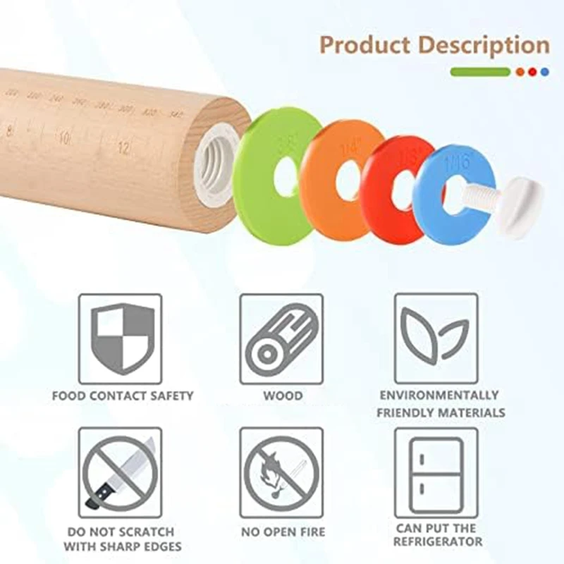 Деревянная Скалка с 4 регулируемыми кольцами толщиной, антипригарный ролик для теста для выпечки, прочный ролик для пиццы, кухонные принадлежности