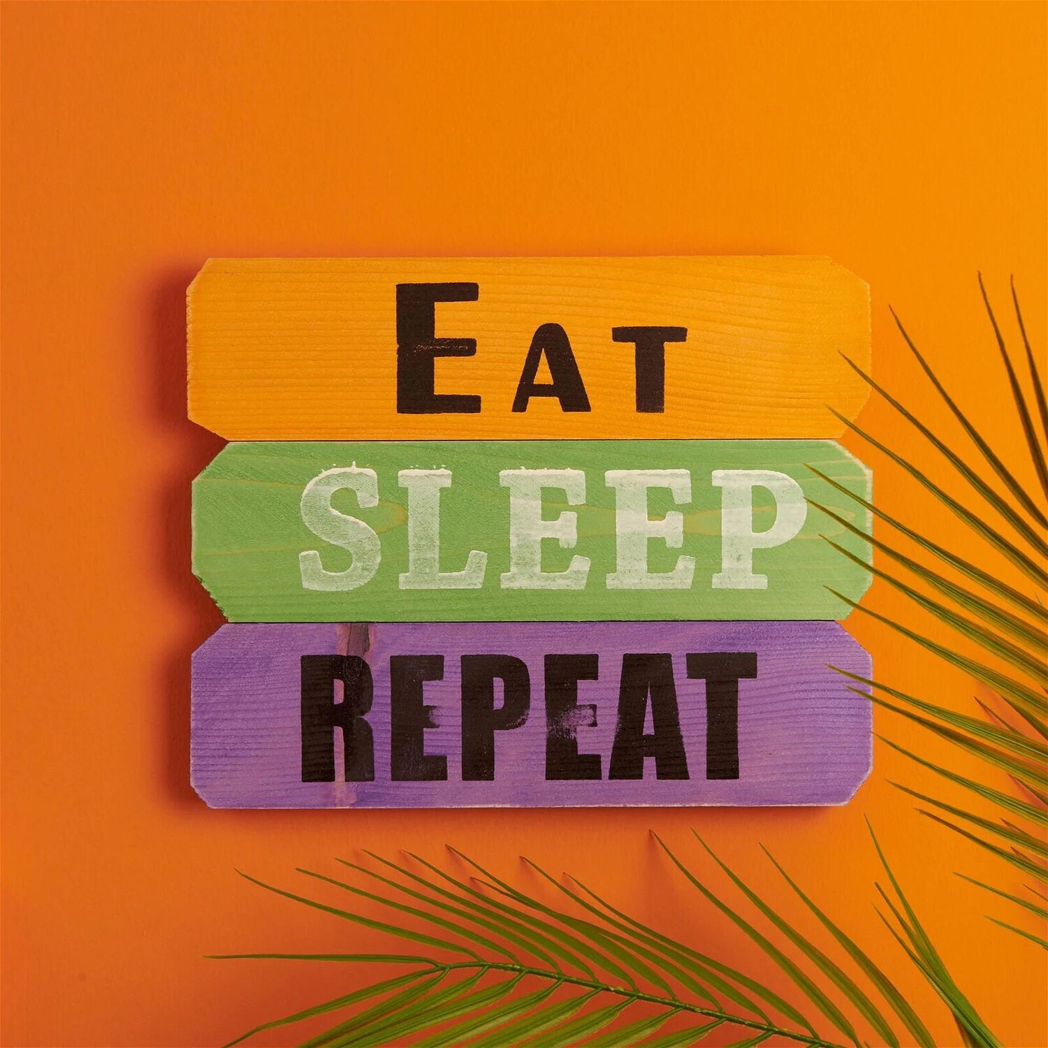 Деревянная декоративная настенная панель «Ешь/Сон/Повторяй»Цвет: Renkli