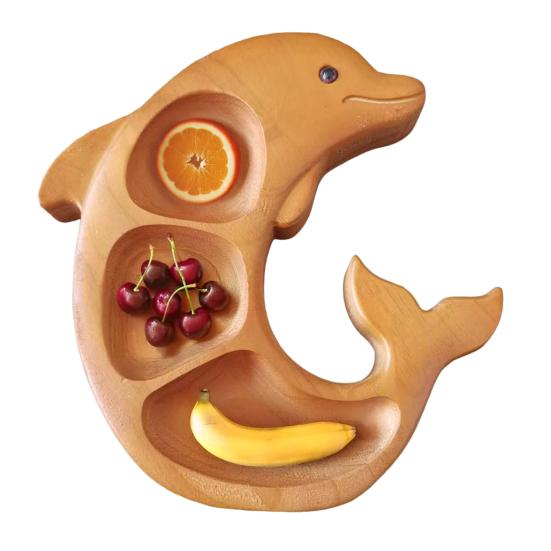 Деревянная доска для закусок в форме дельфина, доска для сыра, блюдо для подачи фруктов с 3 отделениями, забавная кухонная утварь с дельфинами для пляжных вечеринок A