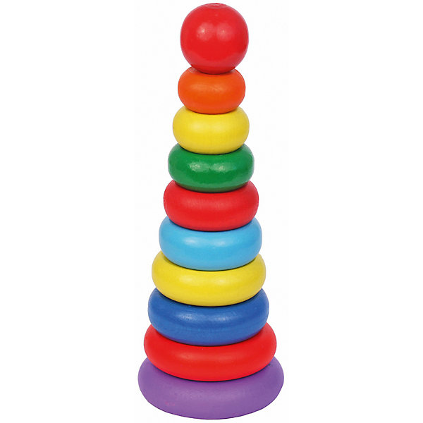 Характеристики товара: • из чего сделана игрушка (состав): дерево • комплектация: 10 элементов игрушки-пирамидки • высота пирамидки: 21 см • диаметр основания: 7 см • упаковка: картонная коробка Яркая игрушка-пирамидка , несомненно, заинтересует вашего малыша. Пирамидка состоит из основания со штырьком, на который нанизываются восемь цветных колец разных диаметров и верхушка в виде большого красного шарика. Игры с пирамидкой развивают у малышей мелкую моторику рук, координацию движений, знакомят с понятиями формы, цвета и размера предмета.
