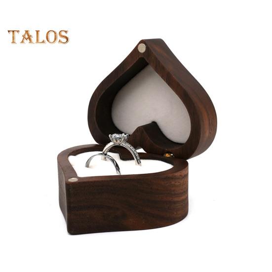 Деревянная подарочная коробка для колец в форме сердца с мягкой подкладкой, портативная персонализированная винтажная деревянная шкатулка для украшений, держатель для обручального кольца G