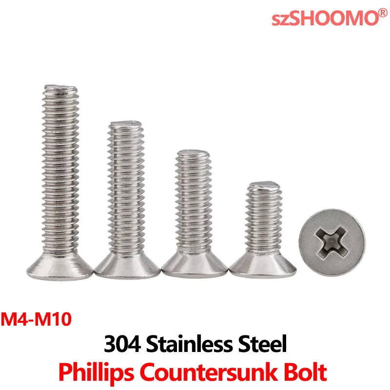 SHOOMO Stainless Steel 304 Cross Recessed Countersunk Bolts KM Flat Head Phillips Machine Screws M4 M5 M6 M8 M10