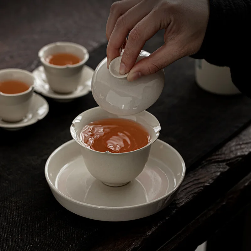Деревянная серая глазурованная чаша с тремя видами подсолнечника, керамическая зеркальная чаша для чая, прочная и гладкая