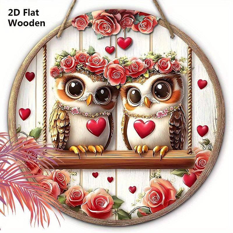 Деревянная табличка на День святого Валентина с очаровательной парой сов и узором из роз, круглая табличка для декора на стену или входную дверь, идеальный подарок на День святого Валентина 20cm/7.87in розовый